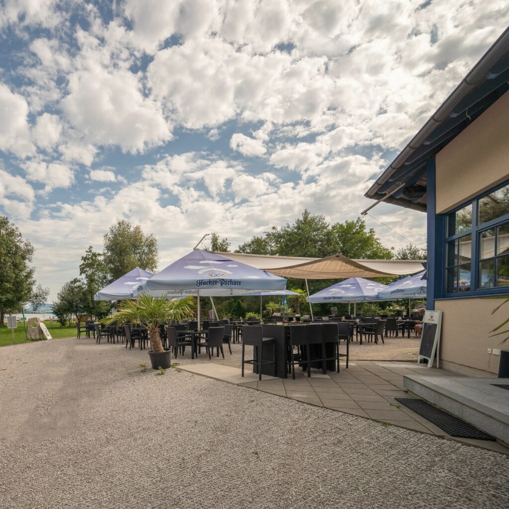 In der angrenzenden Vinothek Mr. Us – Joy of Wine erwartet euch eine erlesene Auswahl an Weinen sowie hausgemachte Antipasti – perfekt, um den Tag entspannt mit einem guten Tropfen am See ausklingen zu lassen.